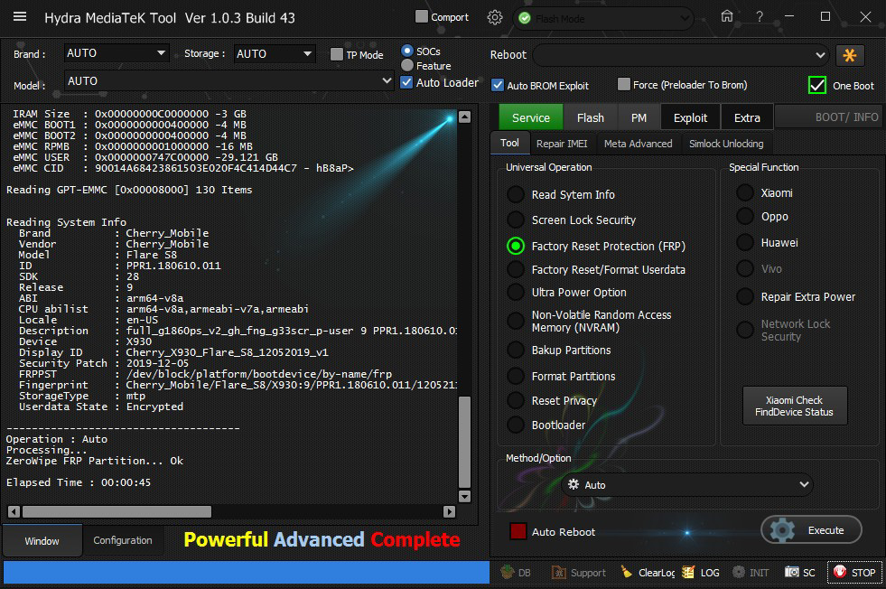 Cherry Mobile Flare S8 FRP partition successfully removed by Hydra Tool