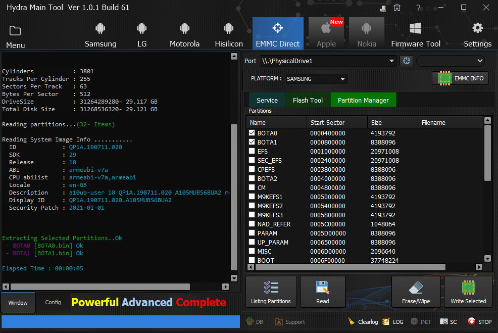 Extracting Selected partition of Samsung using EMMC Tool of Hydra Main Tool