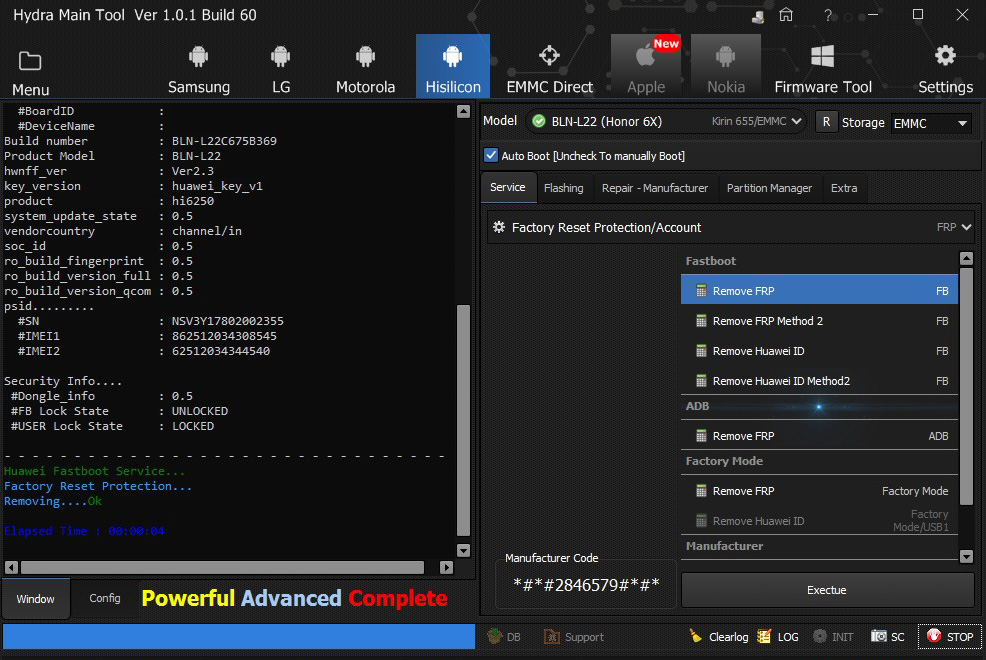 HiSilicon Huawei BLN-L22 (Honor 6X) Factory Reset Protection successfully done by Hyd