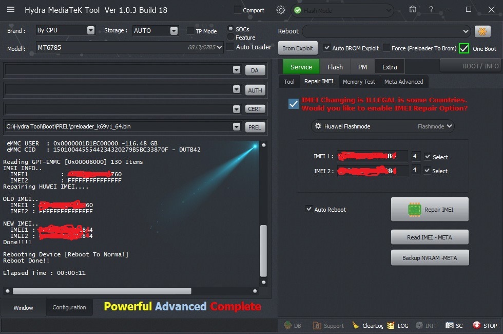 Huawei mediatek MT6785 IMEI Repaired successfully done by Hydra Tool