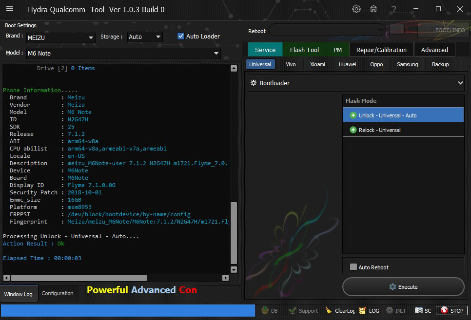 Meizu M6 Note Unlock Bootloader universal way successfully done by Hydra Tool