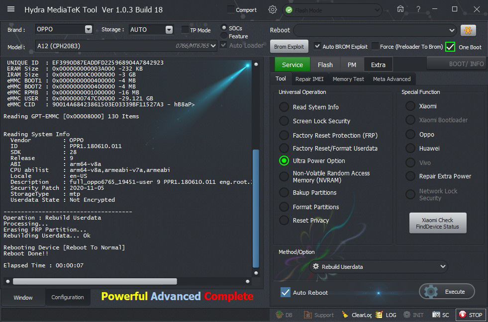 Oppo A12 (CPH 2083) Rebulding user data successfully done by Hydra Tool