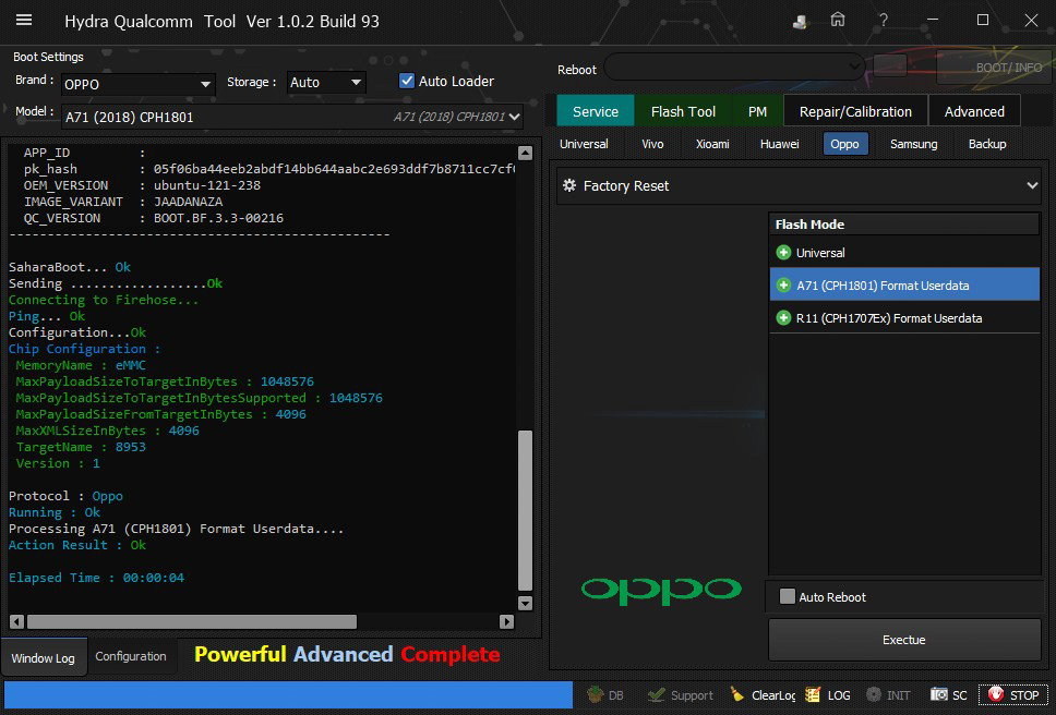 Oppo A71 (2018) CPH 1801 format user data successfully removed by Hyra King!