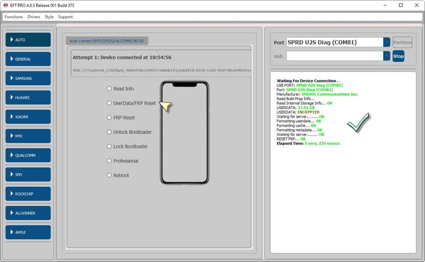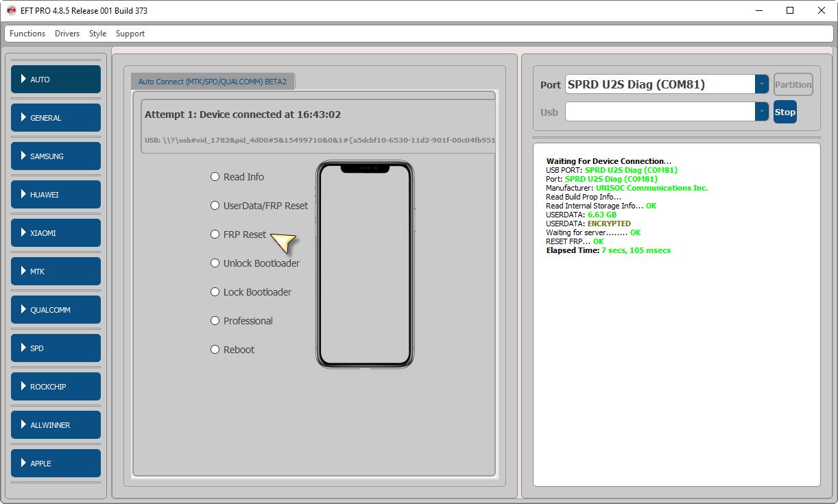 Download port: MediaTek PreLoader USB VCOM_V1632 (Android) (COM2)