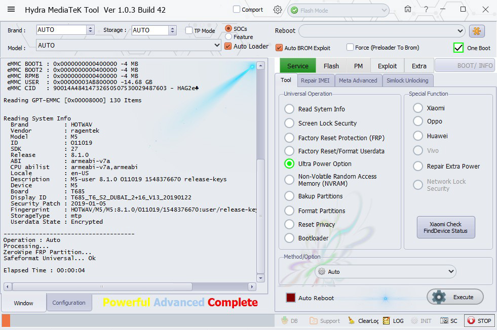 Ragentek M5 Safe Universal Format successfully done by Hydra Tool_