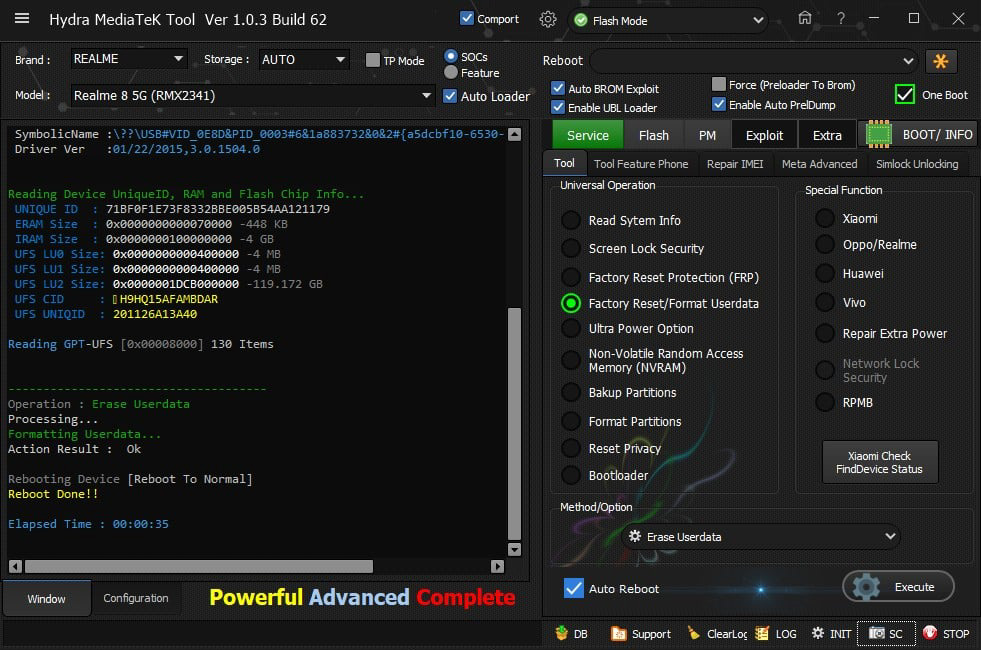 Realme 8 5G (RMX2341) Demo successfully removed by Hydra Tool