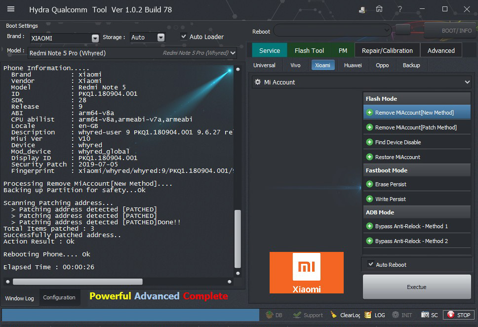 Redmi Note 5 Pro Whyred Mi Account Successfully Removed by Hydra Tool