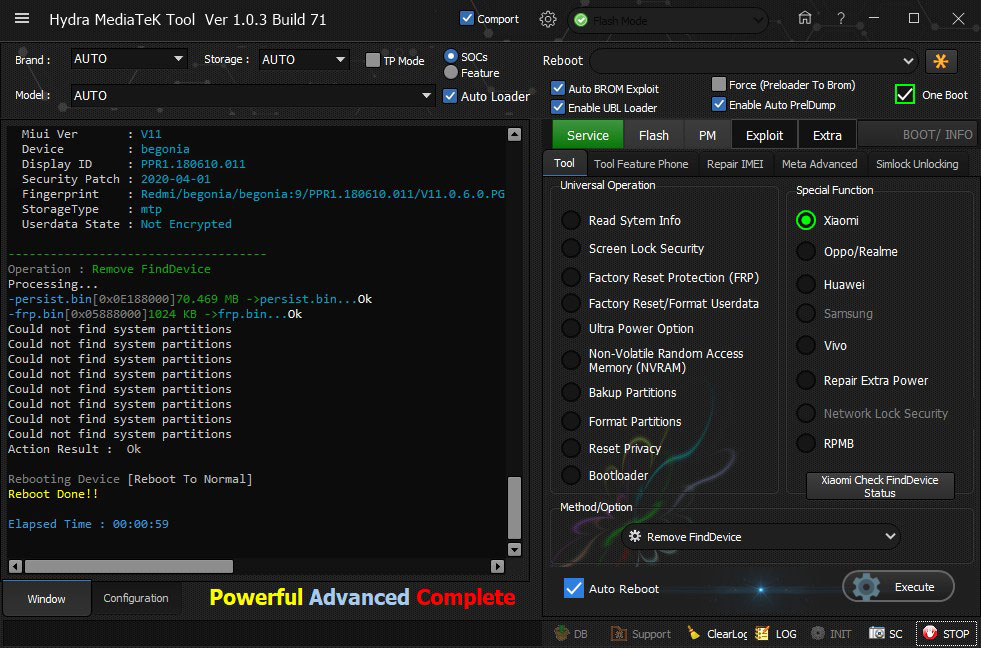 Redmi Note 8 Pro (Begonia) Find Device successfully Removed by Hydra Tool