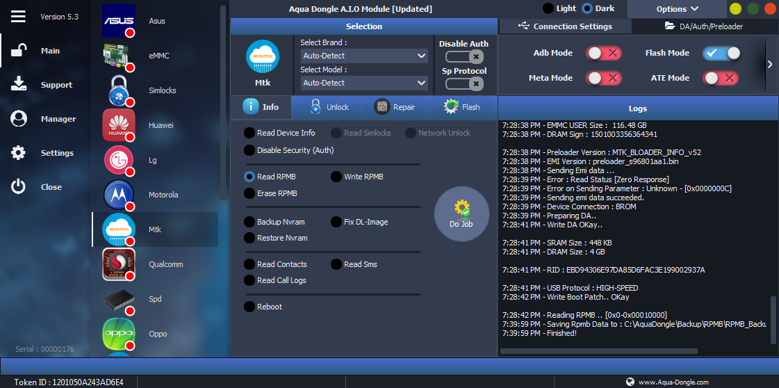 Samaung A22 5G SM-A226B Read RPMB & Reset KG State Lock Knox Guard By Aqua Dongle