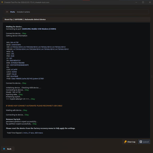 Cheetah Tool Samsung A17 Android 15 FRP Erase By Cheetah Tool Pro