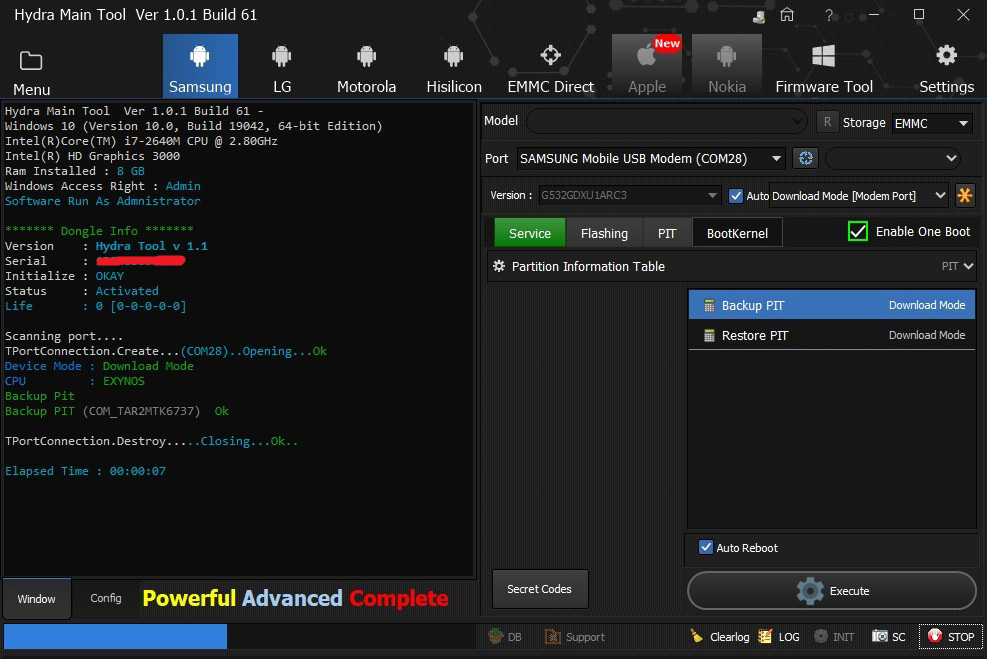 Samsung G532 (J2 Prime) Backing Up PIT file successfully done by Hydra Tool