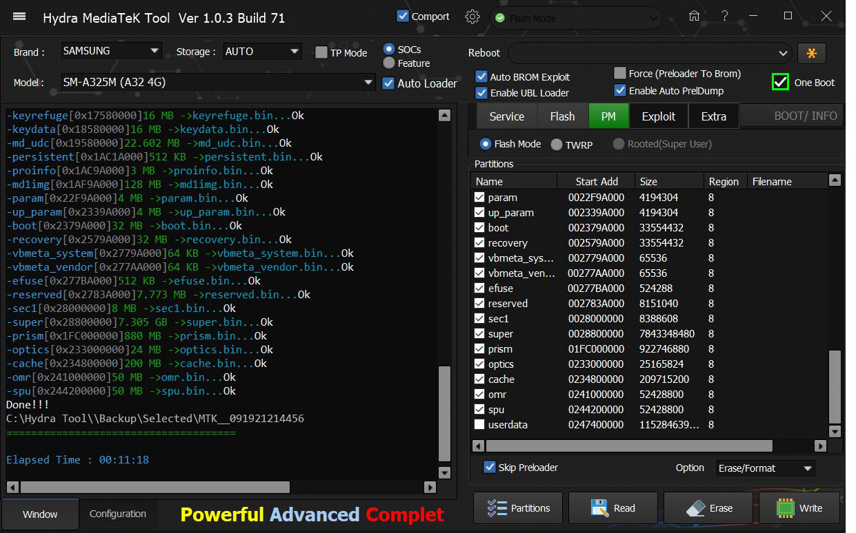 Samsun SM-A325M (A32 4G) selected partition successfully backed up by Hydra Tool