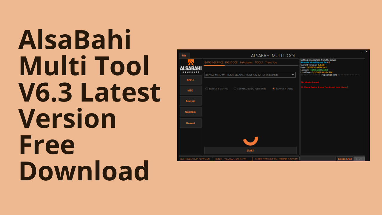Download AlsaBahi Multi-Tool V6.3 iCloud Bypass Tool. is a small application for Windows computers. It allows users to disable the activation lock iCloud Bypass, FMI OFF, Untethered and Tethered Remove iCloud Lock, and MDM Bypass.