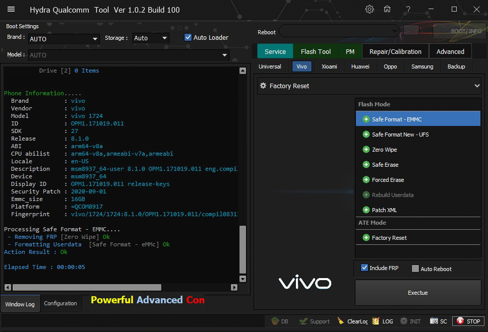 Vivo Y71 (1724) FRP and safe format EMMC method successfully done by Hydra Tool