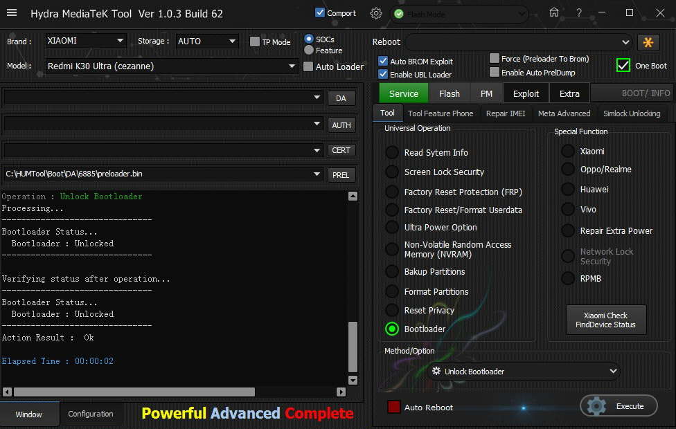 Xiaomi K30 Ultra (Cezanne) Bootloader successfully unlocked by Hydra Tool