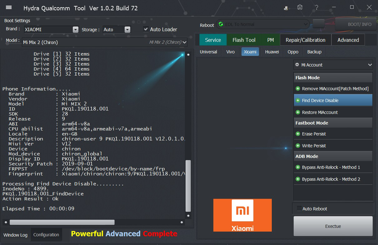 Xiaomi Mi Max 2 (Chiron) Find Device Off successfully done by Hydra Tool