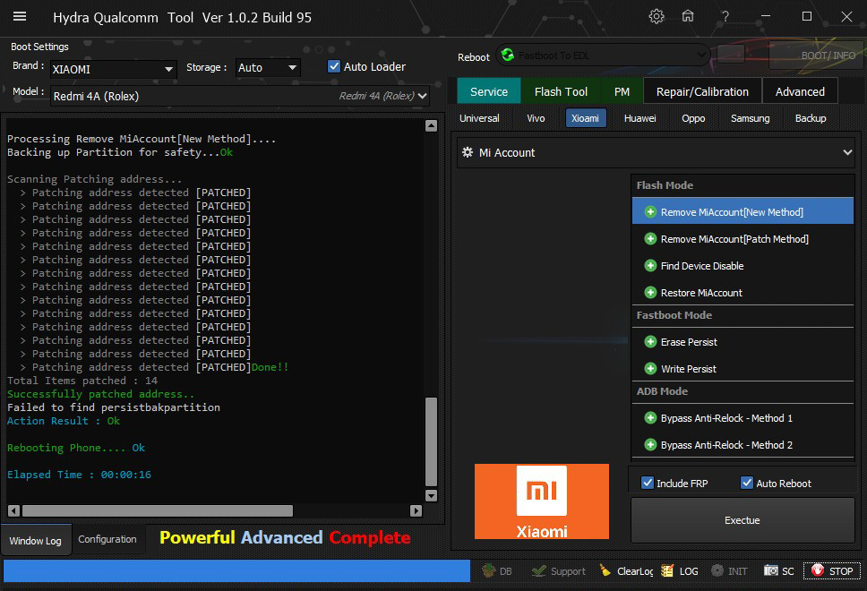 Xiaomi Rdmi 4a (Rolex) Mi Account successfully patched by Hydra Tool