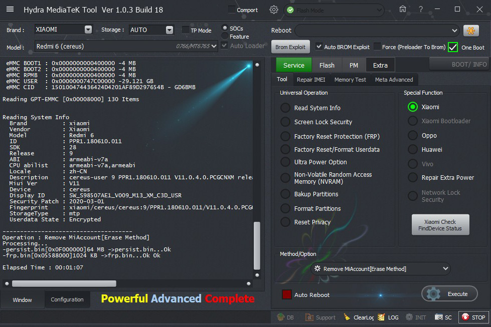 Xiaomi Redmi 6 Cereus Mi Account removed successfully done by Hydra Tool
