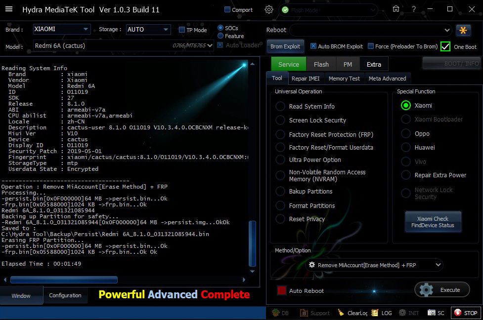 Xiaomi Redmi 6A (Cactus) Removing Mi accout and FRP successfully done by Hydra Tool