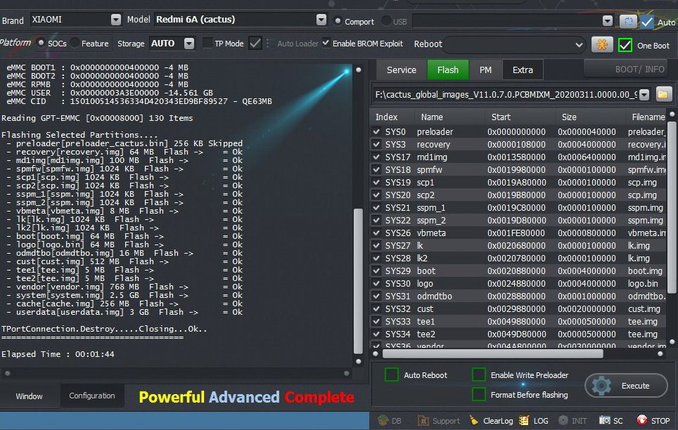 Xiaomi Redmi 6A (Cactus) successfully flashed by Hydra Tool
