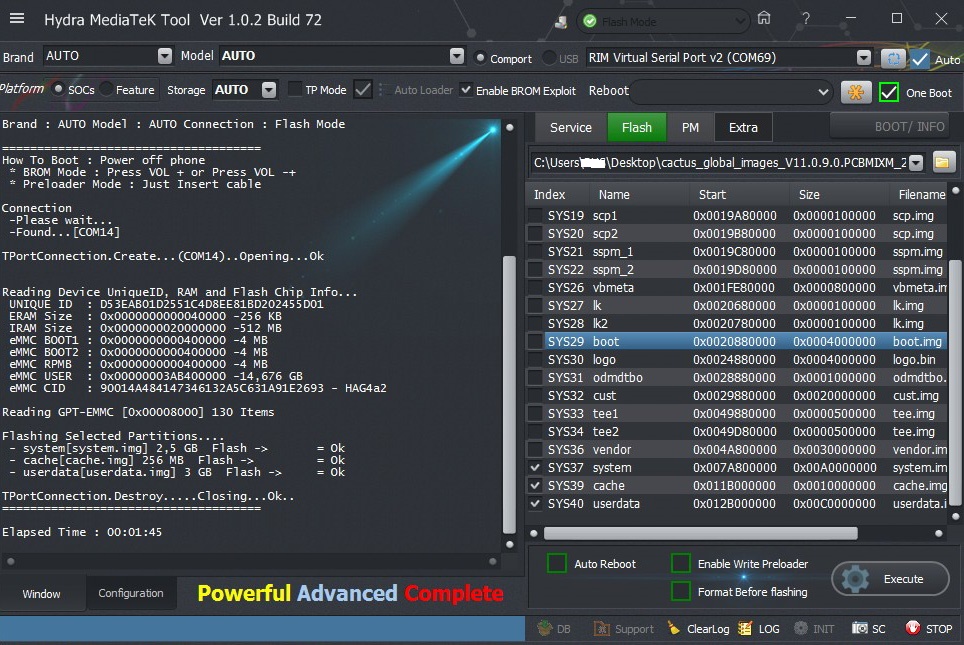 Xiaomi Redmi 6a (cactus) System, cache and userdata flashed successfully by Hydra Tool