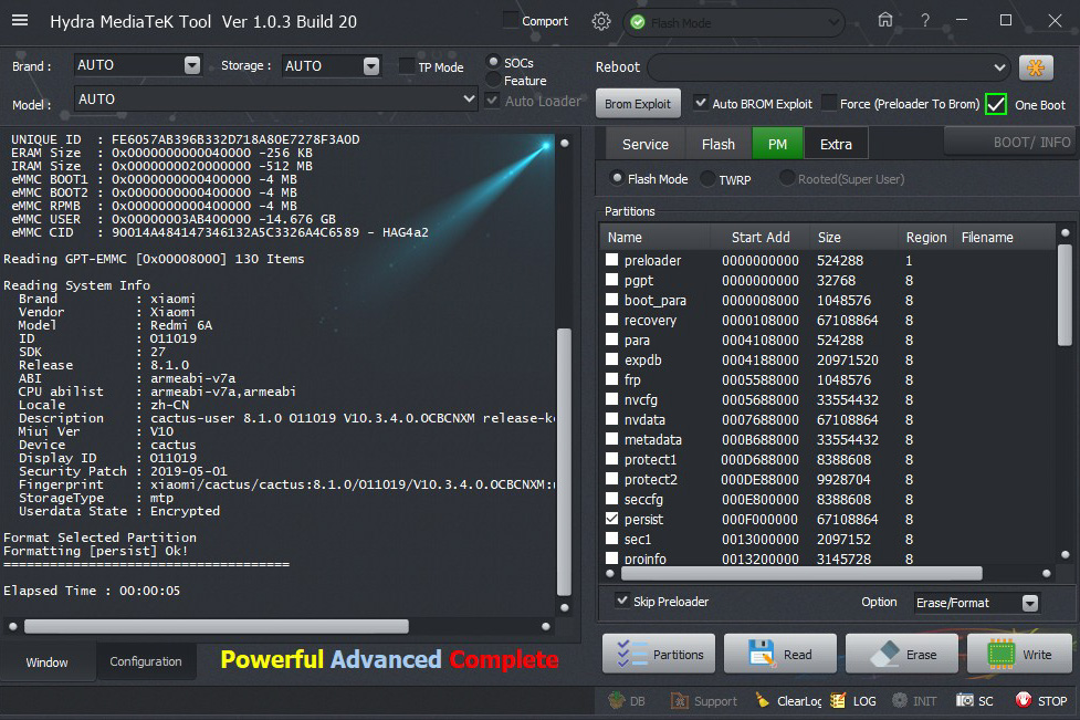 Xiaomi Redmi 6A formatting PRESIST successfully Done by Hydra Tool