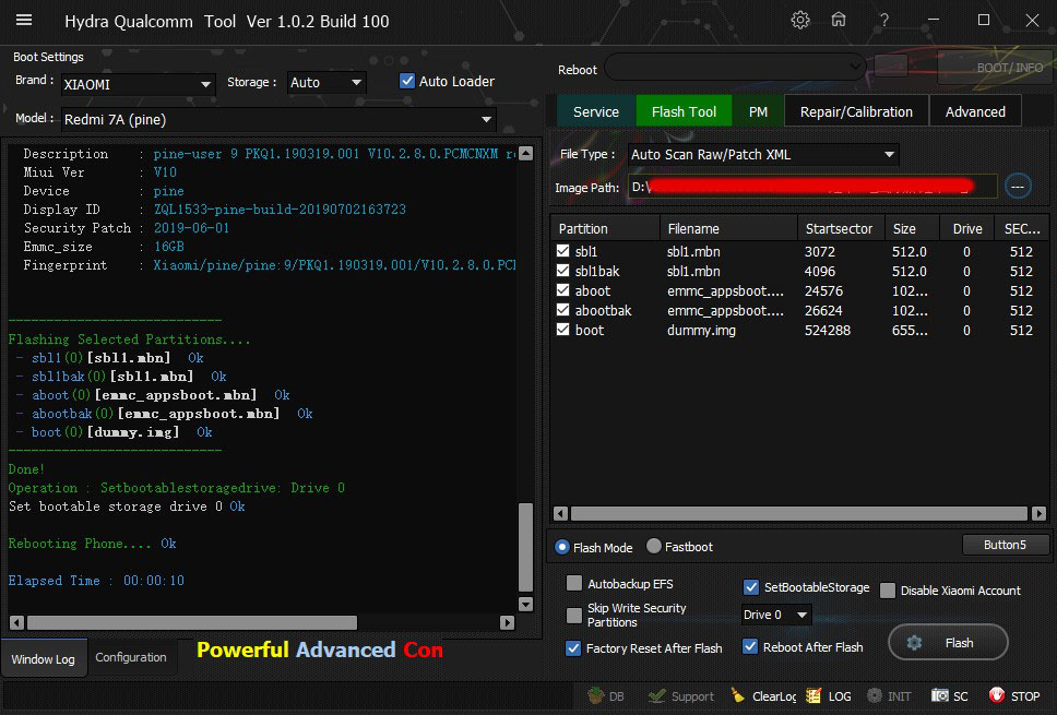 Xiaomi Redmi 7A (Pine) Flashed selected partition successfully done by Hydra Tool