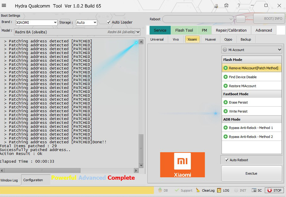 Xiaomi Redmi 8A (Olivelite) MI ACCOUNT successfully removed by Hydra Tool