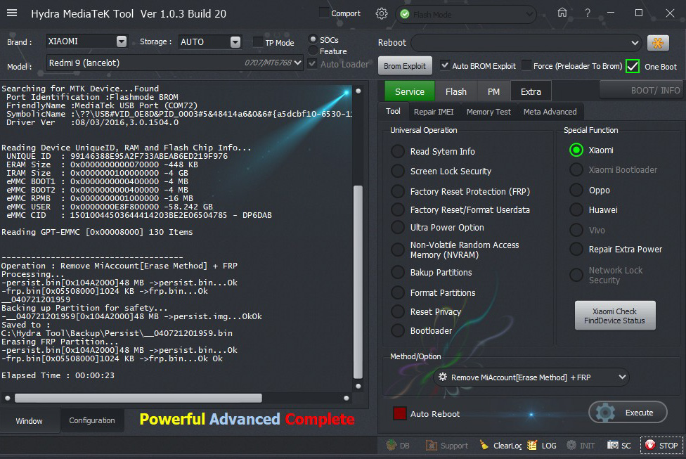 Xiaomi Redmi 9 Lancelot Mi Account and FRP successfully Removed by Hydra Tool