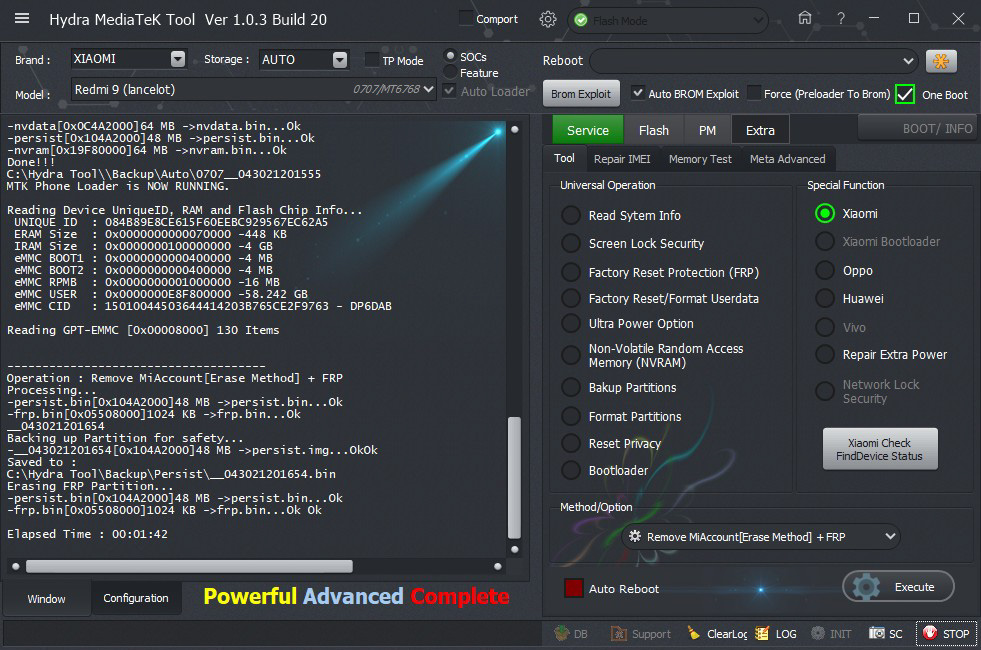 Xiaomi Redmi 9 (lancelot) Mi Account + FRP successfully removed by Hydra Tool
