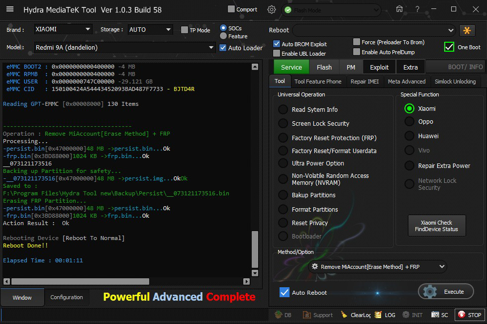 Xiaomi Redmi 9A (Dandelion) Mi Account Successfully removed by Hydra Tool