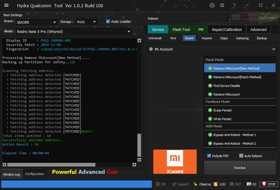 Xiaomi Redmi Note 5 Pro (Whyred) Mi Account successfully removed by Hydra Tool