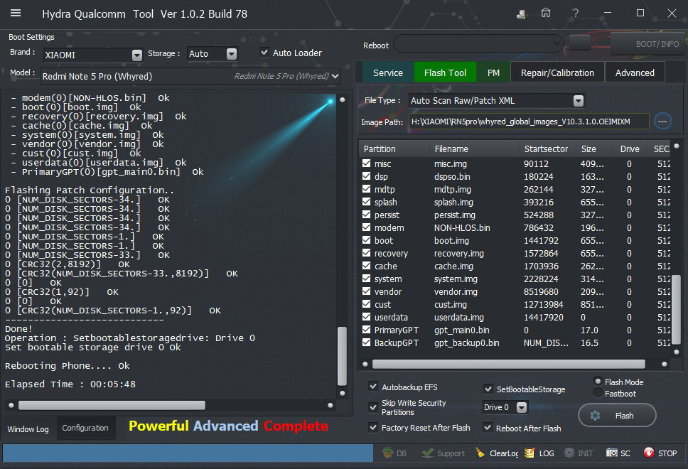 Xiaomi Redmi Note 5 Pro Whyred successfully Flashed by Hydra Tool