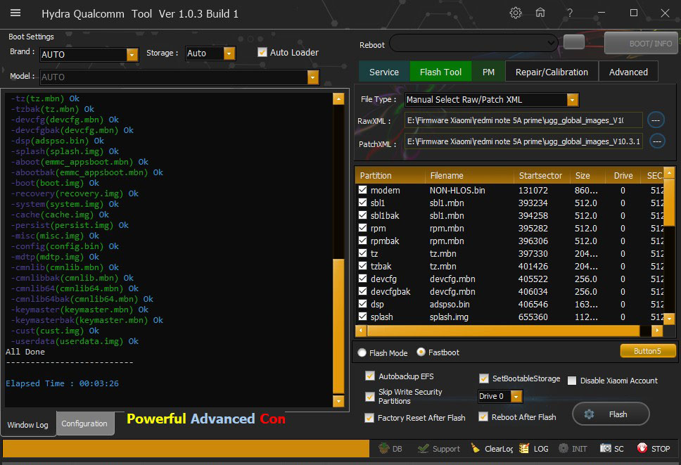 Xiaomi Redmi Note 5A Prime Flashing successfully done by Hydra Tool