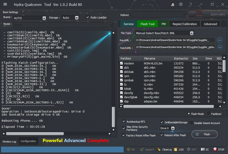 Xiaomi Redmi Note 5A SE (Ugglite) successfully flashed by Hydra Tool