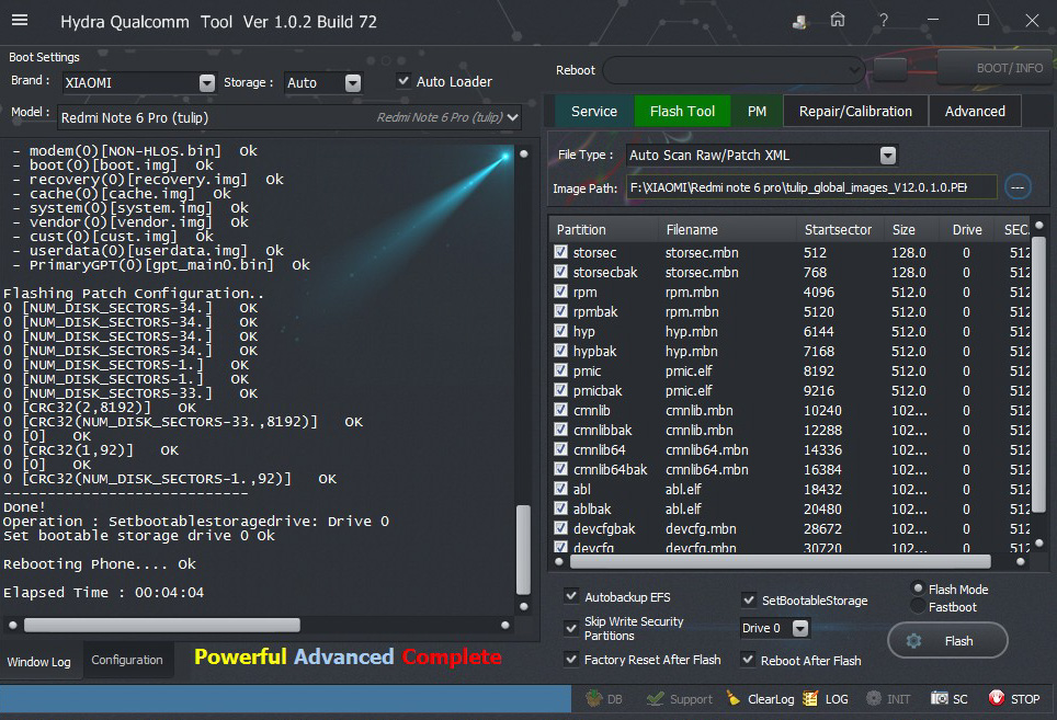 Xiaomi Redmi Note 6 Pro (tulip) successfully flashed by Hydra Tool