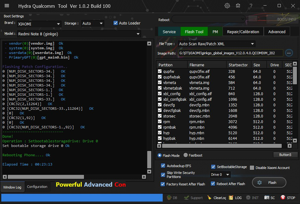 Xiaomi Redmi Note 8 (Ginkgo) flashing successfully done by Hydra Tool