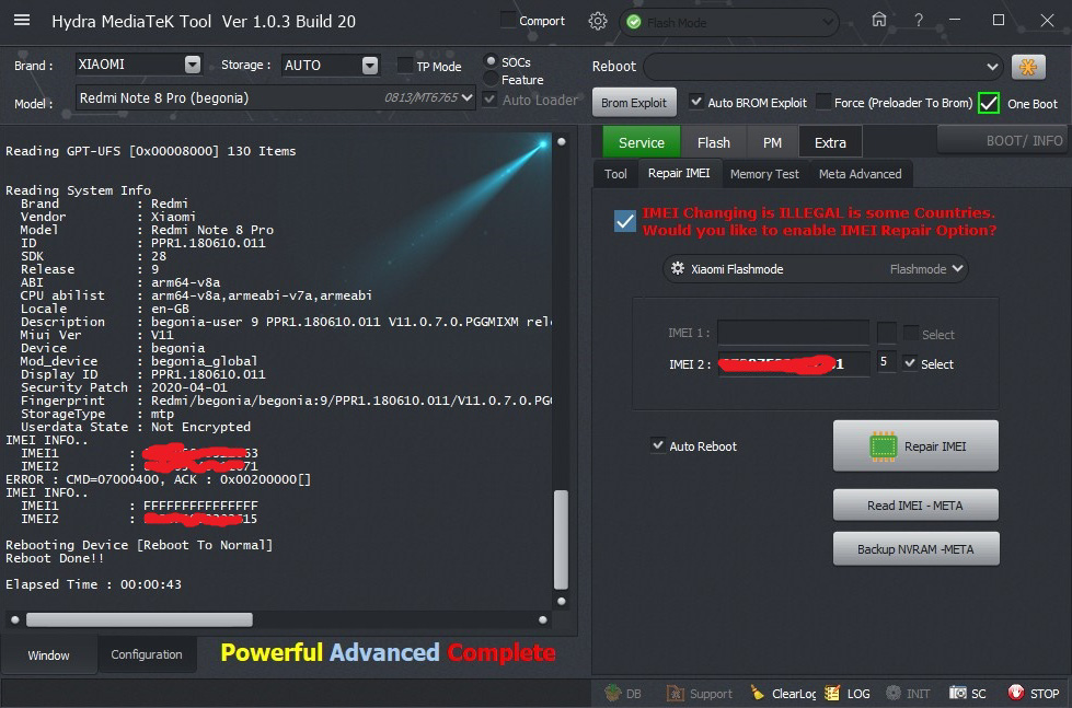 Hydra Xiaomi Redmi Note 8 Pro Begonia Second IMEI repair Done by Hydra Tool