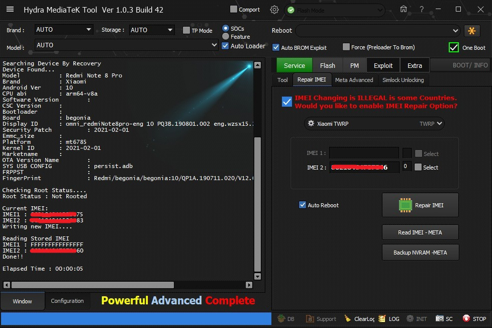 Xiaomi Redmi Note 8 Pro repairing 2nd IMEI successfully repaired by Hydra Tool