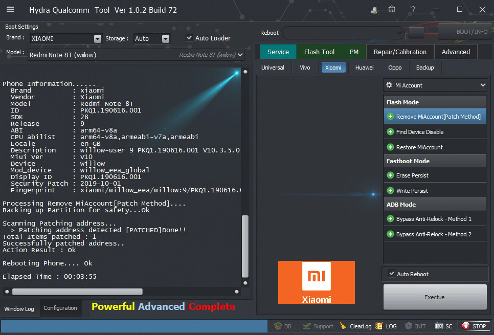 Xiaomi Redmi Note 8T (Willow) Mi Account Successfully Patched by Hydra Tool