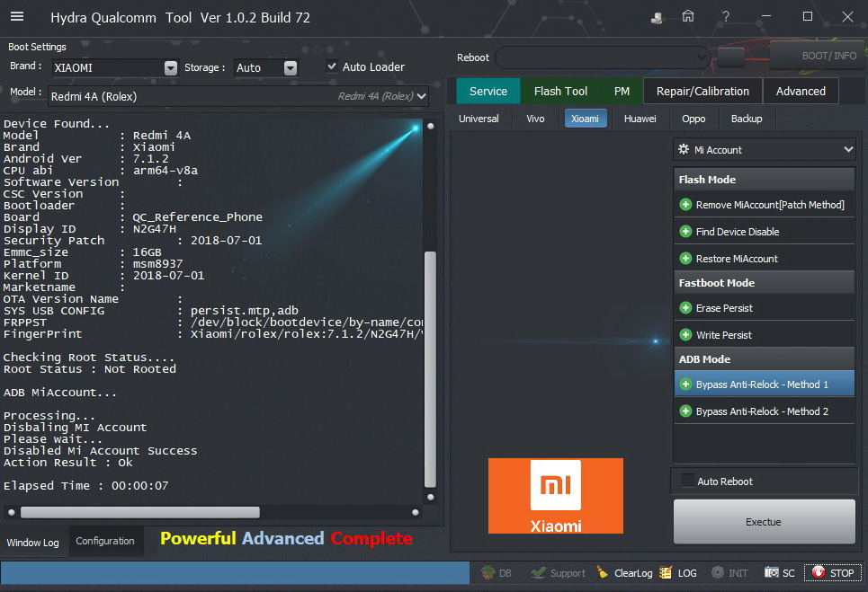 Xioami Redmi 4A (Rolex) Disabled Mi Account successfully done by hydra tool